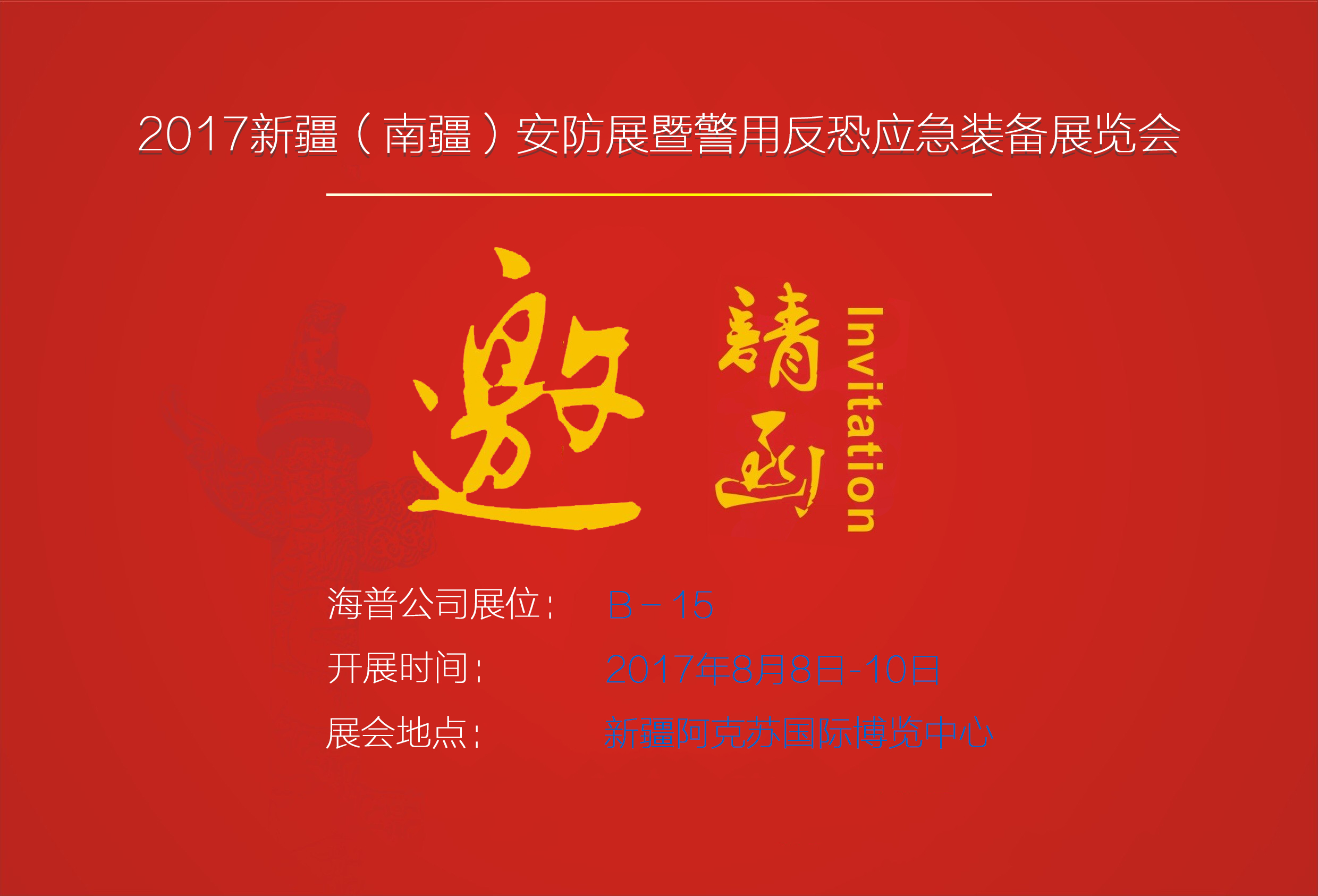 2017年第四屆中國-亞歐安防博覽會即將開幕,海普公司再度亮相新疆,誠邀您參觀體驗海普公司高科技產(chǎn)品!